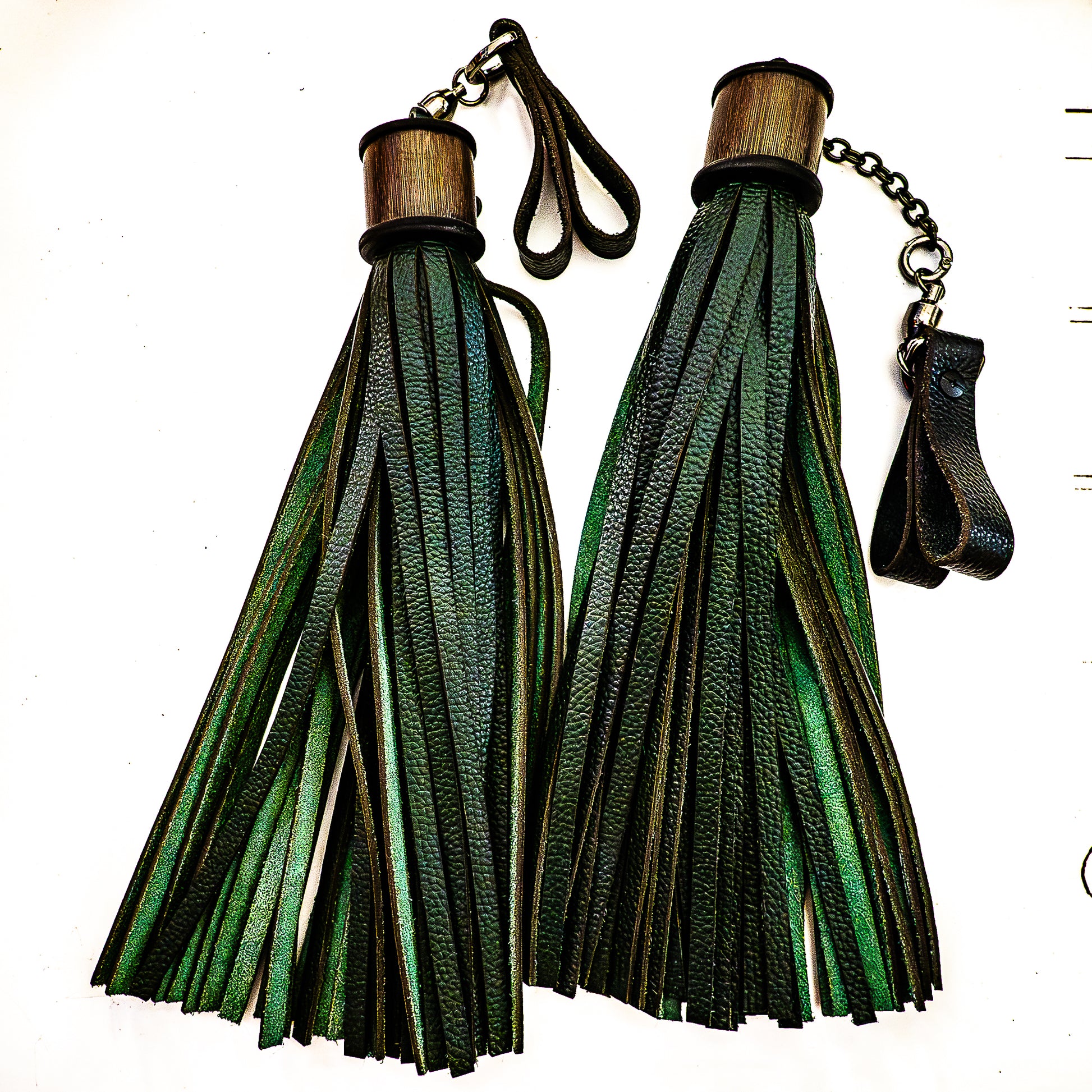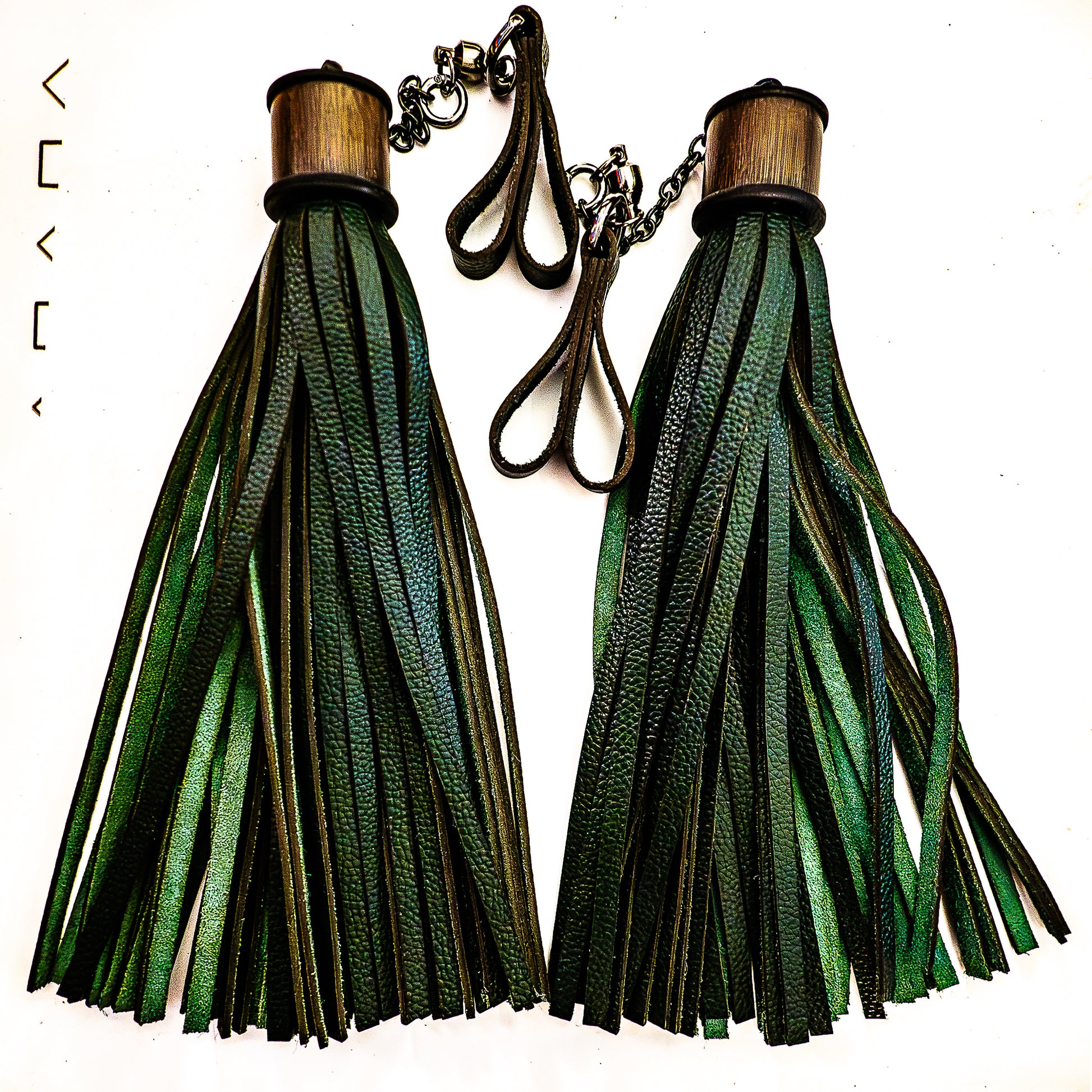 Poi/Tannengrün Fingerflogger (Paar, je 33cm Leder + 25cm Fingerschlaufen und Kette)